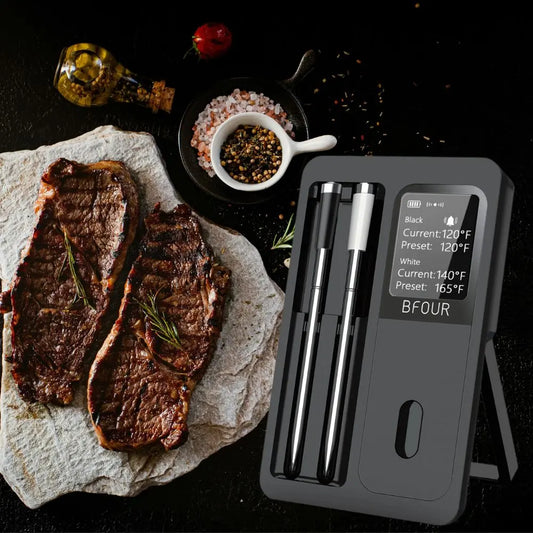 Fini les viandes trop cuites ou pas assez ! Notre Thermomètre à Viande Sans Fil Bluetooth vous permet de surveiller la température de vos grillades avec une précision professionnelle, directement depuis votre smartphone.